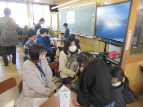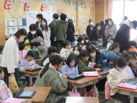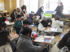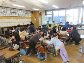 今年度最後の授業参観です。総合的な学習の発表や図画工作の作品作りなど保護者参加型の授業がたくさんありました。6年生は感謝の集いを開き、一人一人の決意表明と感謝の気持ちを込めた合唱を披露し、手作りのエコバッグをプレゼントしました。 |