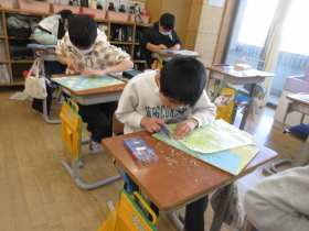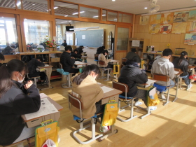 4~6年生は県の学力診断のためのテスト、それにあわせて3年生もまとめのテストに取り組み、集中して頑張る様子が見られました。 |
