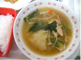 【ご飯、鶏そぼろ、すいとん汁、牛乳】 |