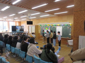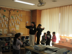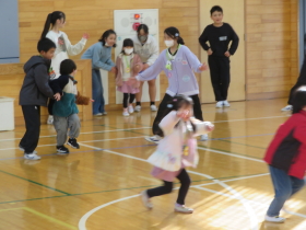 新入生の保護者説明会を行いました。4月から入学する園児のために5年生がいろいろなゲームを準備して一緒に遊びました。 |