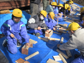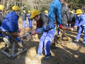 5年生が林業体験を行いました。県の森林・林業協会の協力で丸太切りや檜材を使ったプランターづくり、自然観察など貴重な体験をすることができました。 |