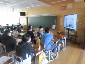 学校薬剤師による薬物乱用防止教室を開きました。インフルエンザ等の罹患者が増加していたため、感染症対策としてオンラインでの実施となりました。各教室で真剣に話を聞く姿が見られました。 |