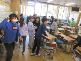 今日は節分。丸めた紙で鬼退治体験をする様子が見られました、きっと中丸小の厄や災難がお祓いされたことでしょう。 |