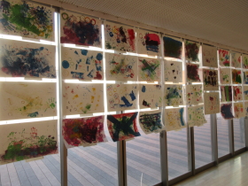 各学年フロアには児童の作品がたくさん掲示されています。来週の授業参観では子どもたちの頑張った成果をたくさんご覧いただけそうです。 |