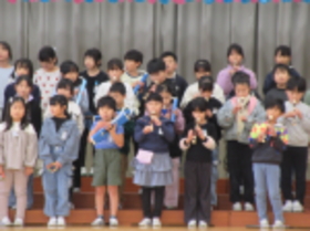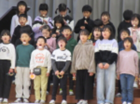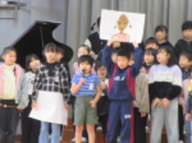 3年生の中丸フェスティバル発表会を行いました。1年生、3年生に見守られながら総合で調べた地域の紹介と手話や楽器を交えた合唱を元気いっぱい披露しました。 |