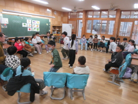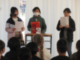 朝の読み聞かせ活動を行いました。保護者や地域の方の感情のこもった朗読に自然と児童たちも引き込まれ、集中した表情が見られました。 |