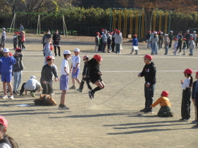 冬は縄跳びの季節です。体育の授業だけでなく、昼休みも自主的に練習する姿がたくさん見られます。 |