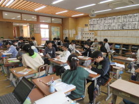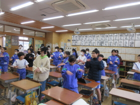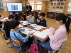 4年生の社会科の学習として、ゲストティーチャーをお招きし、真崎浦の干拓の歴史について学びました。 |