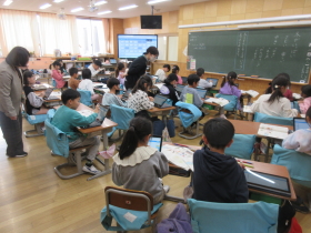 算数の授業でペア学習を行っていました。一生懸命説明したり真剣に聞いたりする姿が見られました。 |