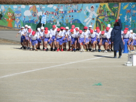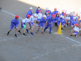 5・6年生による委員会リレーが行われました。メンバーの親睦を深めるとともに委員会を盛り上げようという趣旨で児童が自主企画し、各委員会にちなんだグッズをバトンにして走っていました。 |