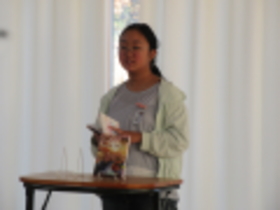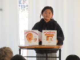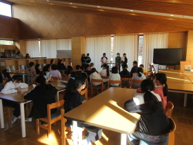 図書委員会の企画によるお薦めの本について紹介する『ビブリオバトル』を開催しました。自ら挑戦した5人の発表はどれも素晴らしかったです。 |