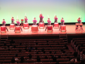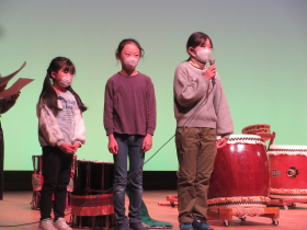 青少年育成村民会議中丸支部のご協力のもと、文化センターでふれあいコンサートを開催しました。ハーモニーを奏でるリコーダー部の演奏や東海和太鼓保存会による迫力ある太鼓演舞を鑑賞しました。また、代表児童が和太鼓体験を行い、とても楽しそうに叩いていました。 |