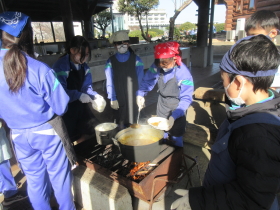 地域交流の一環として、東海南中、東海高校と合同挨拶運動を行いました。寒さに負けず、それぞれの学校の前で小中高生が一緒に元気な挨拶を呼びかけました。 |